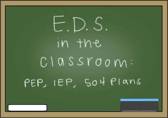 With the help of teacher and mommy to 2 zebras, Sara Waldrip, we have begun building a Parent's Guide to 504, PEP, and IEP for children in grades K-12. Complete with examples and important information to know before, during, and after your meeting, our goal is to help you and your child navigate the classroom with EDS.